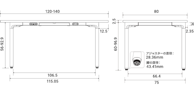 幅120~140×奥行80×高さ62.5〜99.4cm